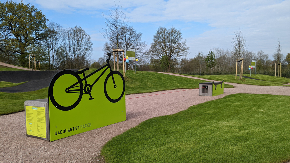 Die BLOACS Slackline-Anlagen im Bikepark Rellingen wurden mit übergroßen Seitenwänden ausgestattet. Bild: BLOACS