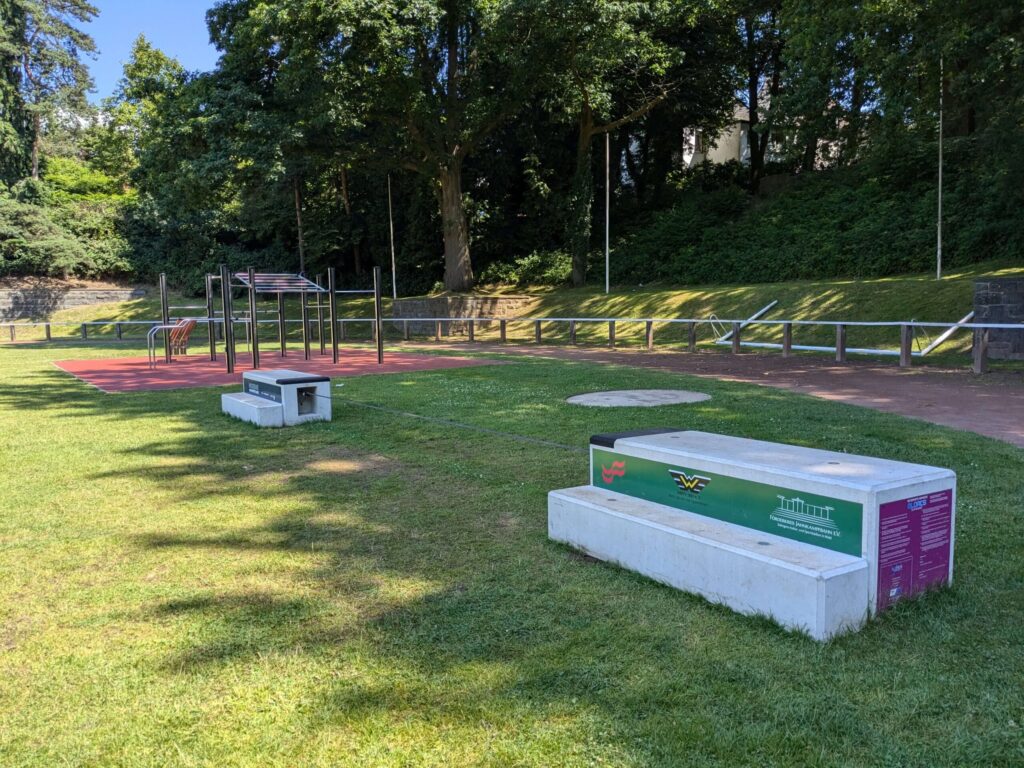 Seit Kurzem steht die erste BLOACS Slackline-Anlage mit BLOACS Fitness Steps auf der Jahnkampfbahn in Solingen.
