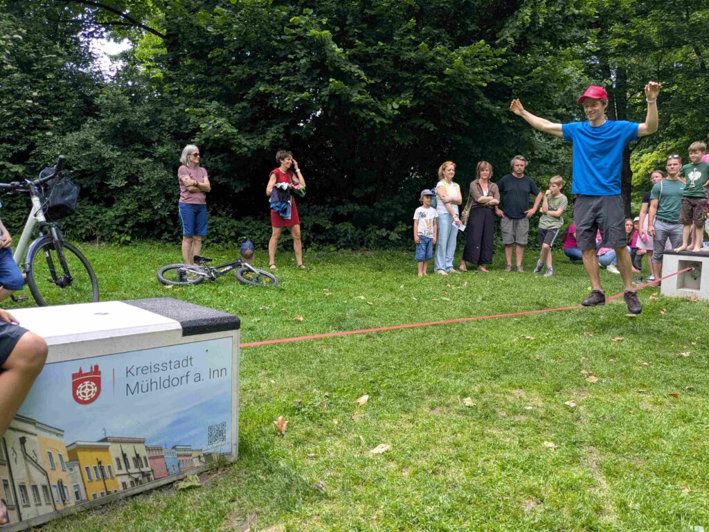 Am Pfingstwochenende wurde Mühldorf am Inn zum Schauplatz eines ganz besonderen Highlights: Im Rahmen der Veranstaltungsreihe „Mühldorf bewegt sich“ sorgte Slackline-Profi Friedi Kühne für Staunen, Spannung – und jede Menge wacklige Knie (zumindest bei den ersten Versuchen der Besucher:innen).